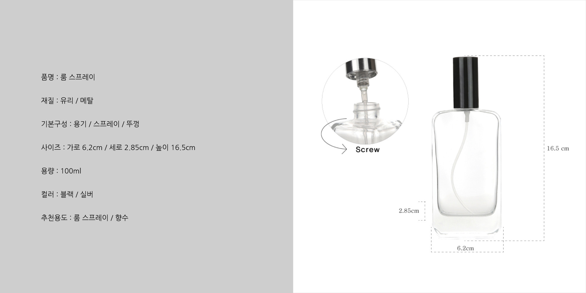 - 100ml 용량으로 넉넉한 크기의 룸스프레이 및 향수 용기 입니다.