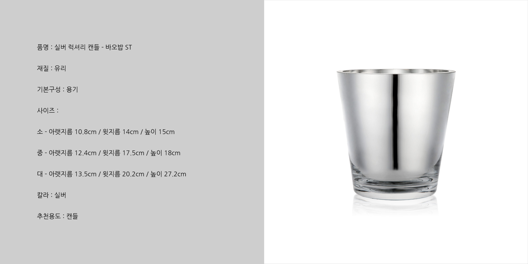 고급스런 인테리어에 매우 잘 어울리며, 캔들 제작시 불꽃이 은은하게 퍼져 차분하고 로맨틱한 분위기를 연출할 수 있습니다.