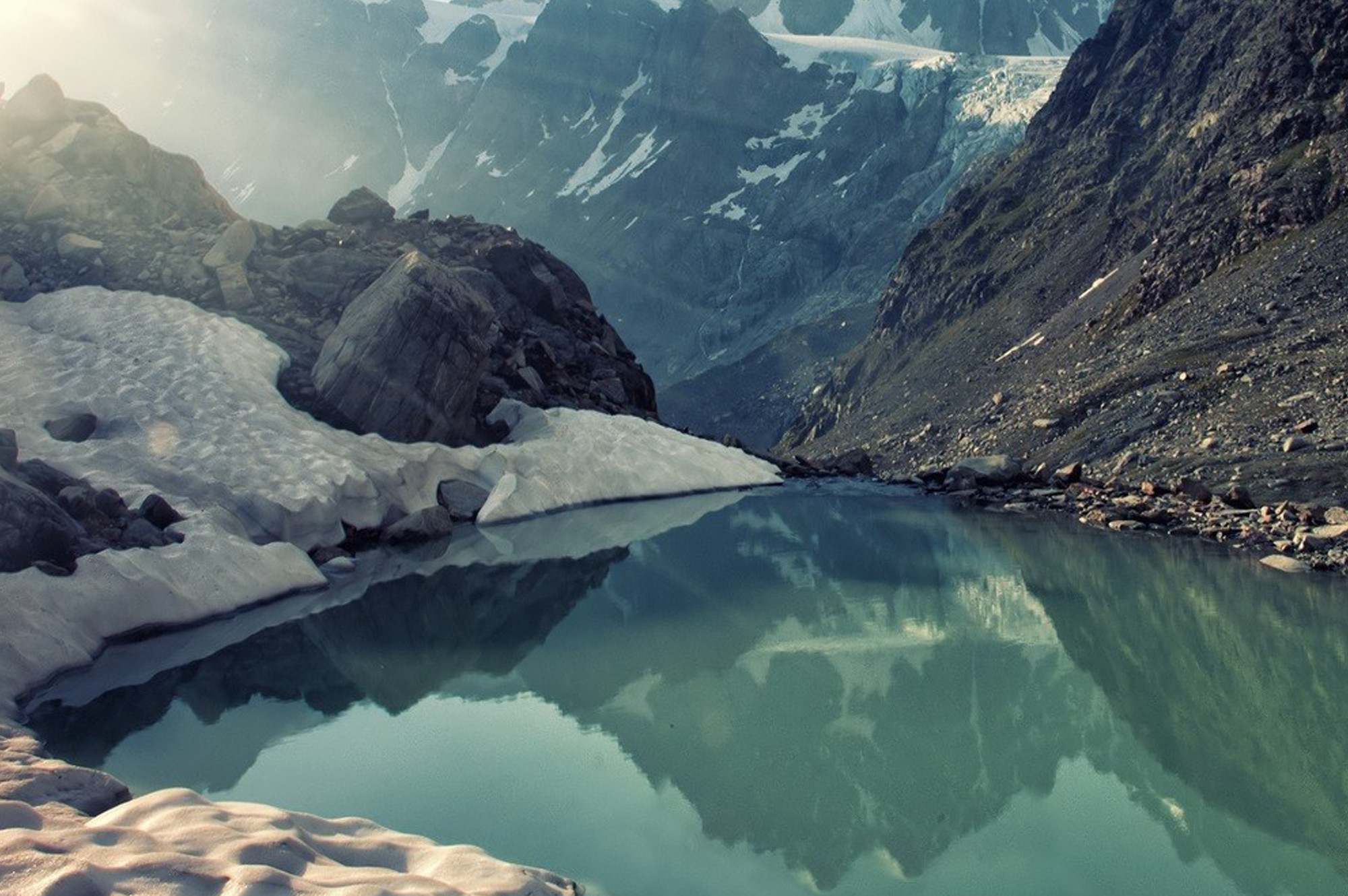 웅장한 산의 녹아내린 눈, 봄빛의 기운, 물의 시원한 향기를 느낄 수 있습니다.