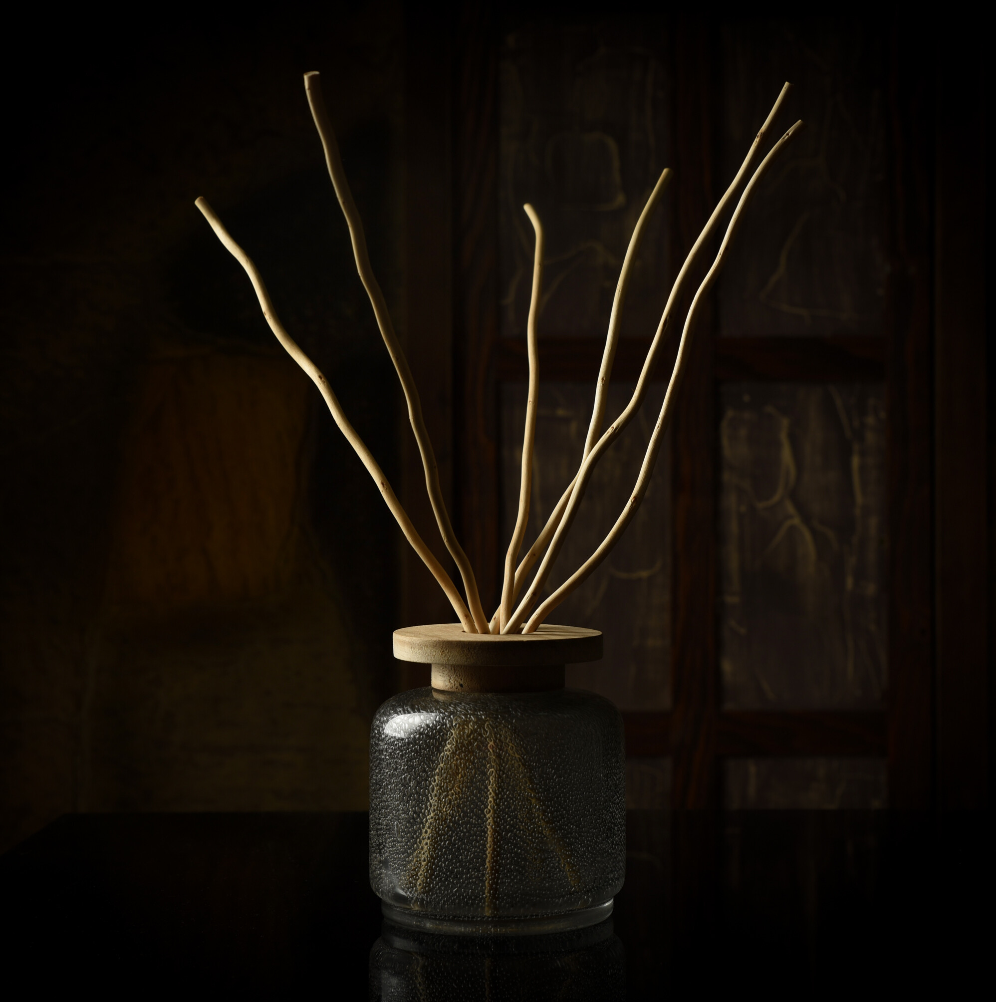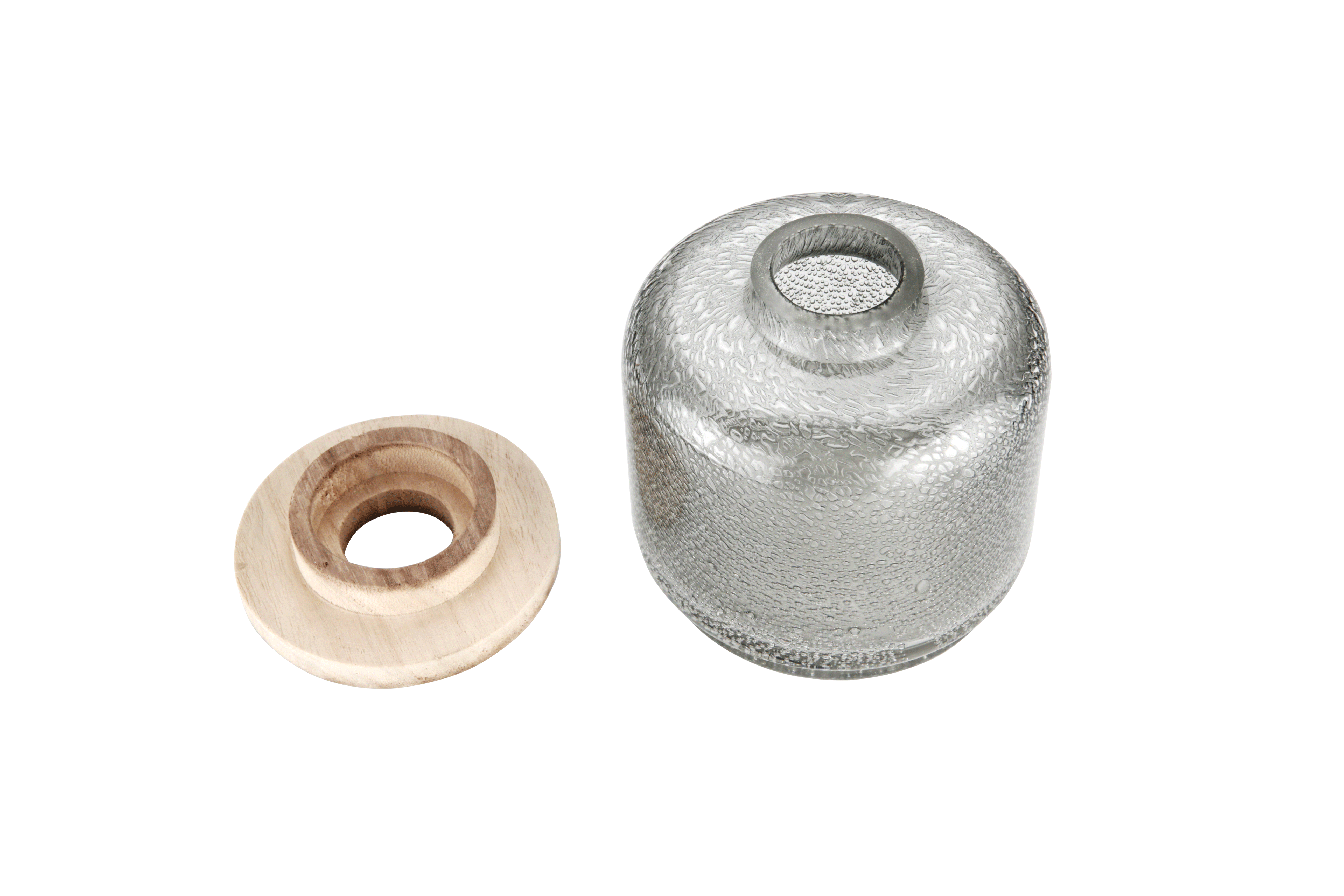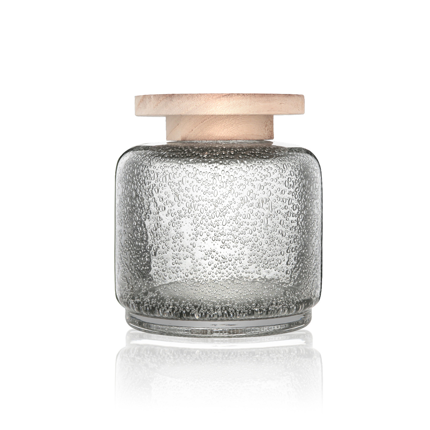 용기의 리드 부분은 나무로 되어있으며, 유리에는 공기방울이 촘촘히 박혀 고급스러움을 더해줍니다.