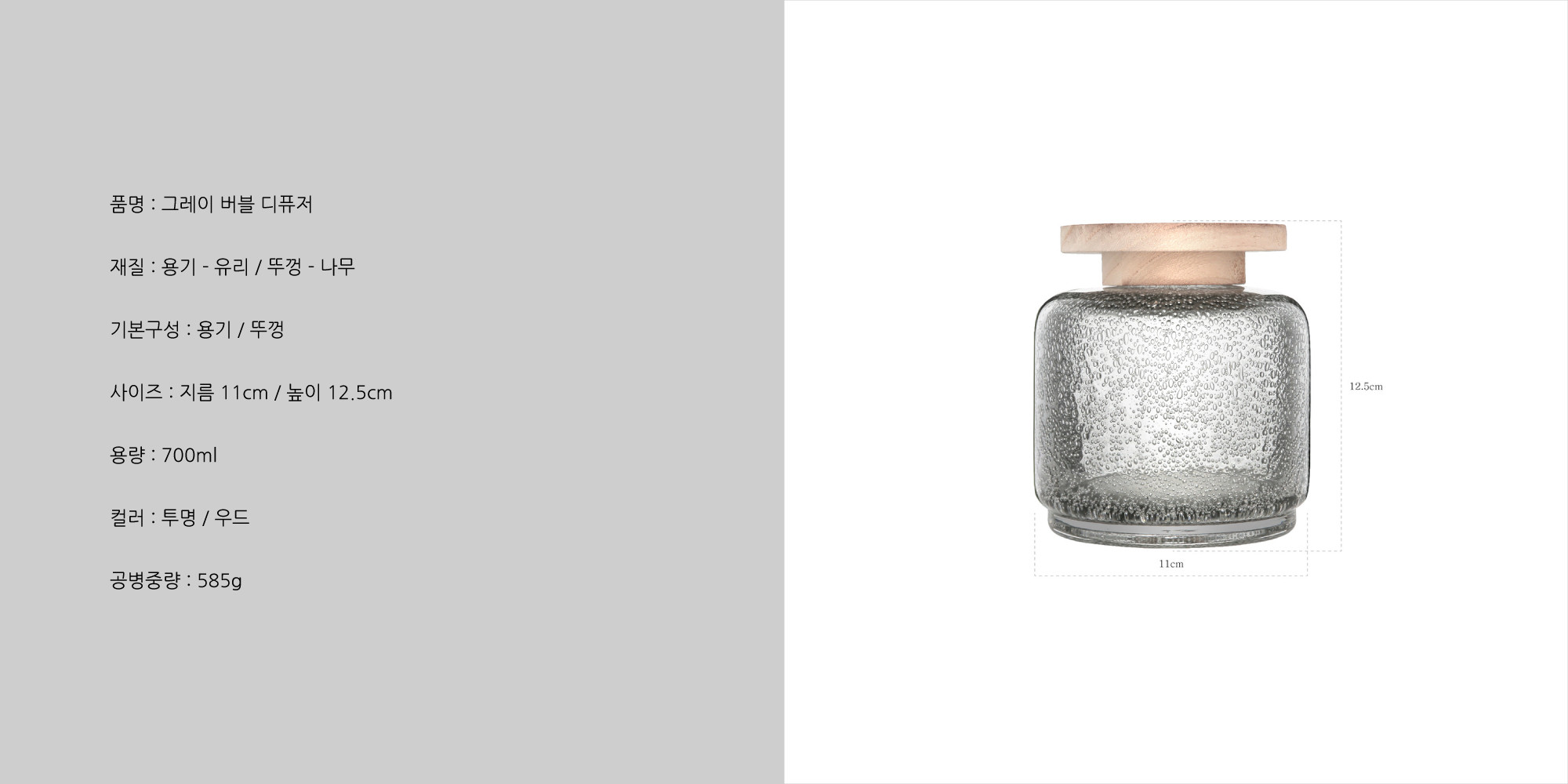 묵직한 우드 리드와 그레이 컬러에 공기방울로 프레쉬한 분위기를 연출하였고, 모노톤 인테리어 공간에 잘 어울리는 디자인입니다.