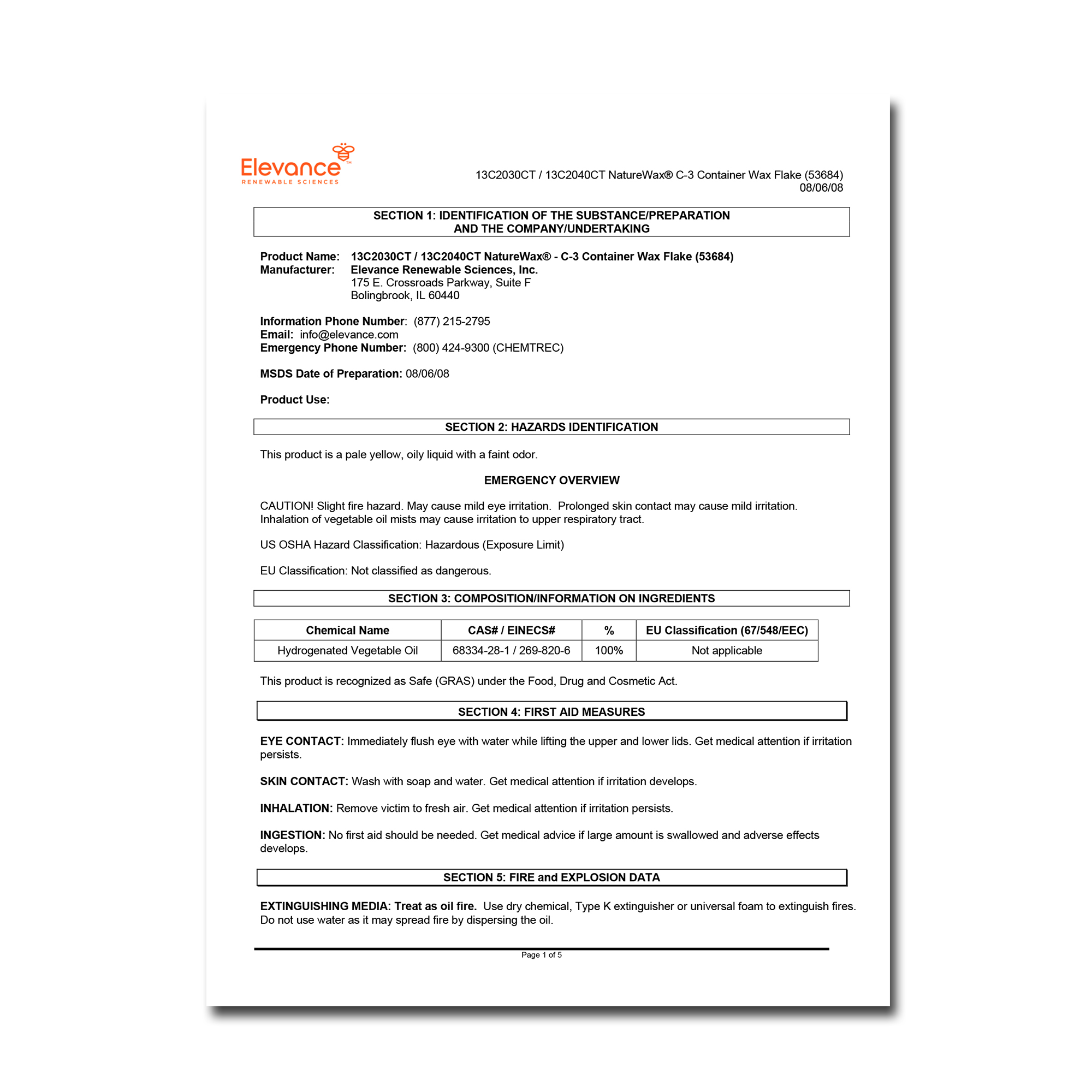 네이처 소이왁스 MSDS