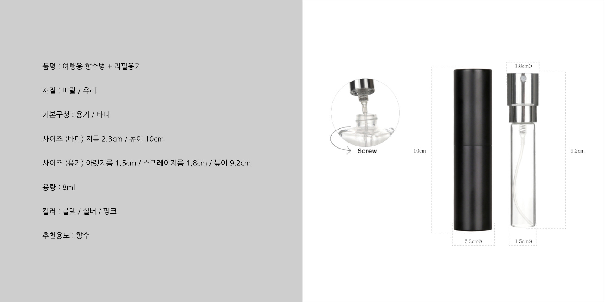 - 휴대용으로 사용하기 편리한 향수병입니다.