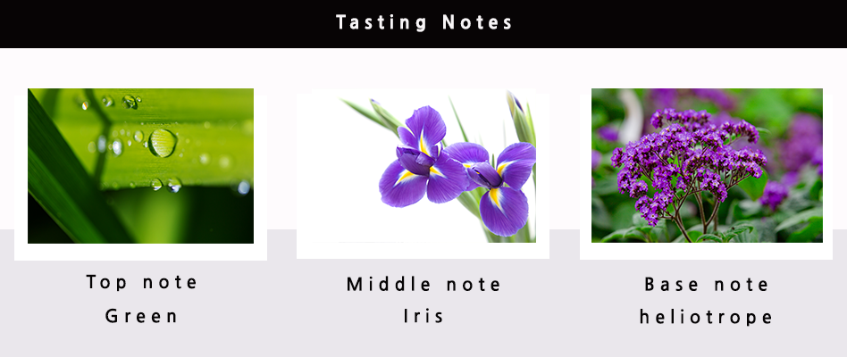 그린노트에 신선함을 시작으로 보랏빛의 맑고 투명한 자수정을 모티브로 표현해 낸 향기입니다. 자수정의 향기가 있다면 아마도 이것이 아닐까요..
