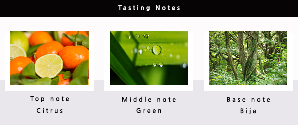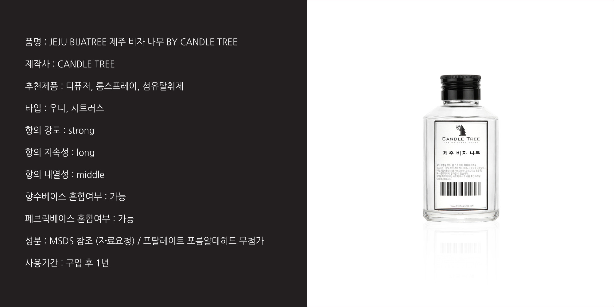 상큼 달콤한 시트러스 와 비자나무 향기가 어울려져 청량한 제주 비자림에 와 있는 듯 한 느낌입니다.