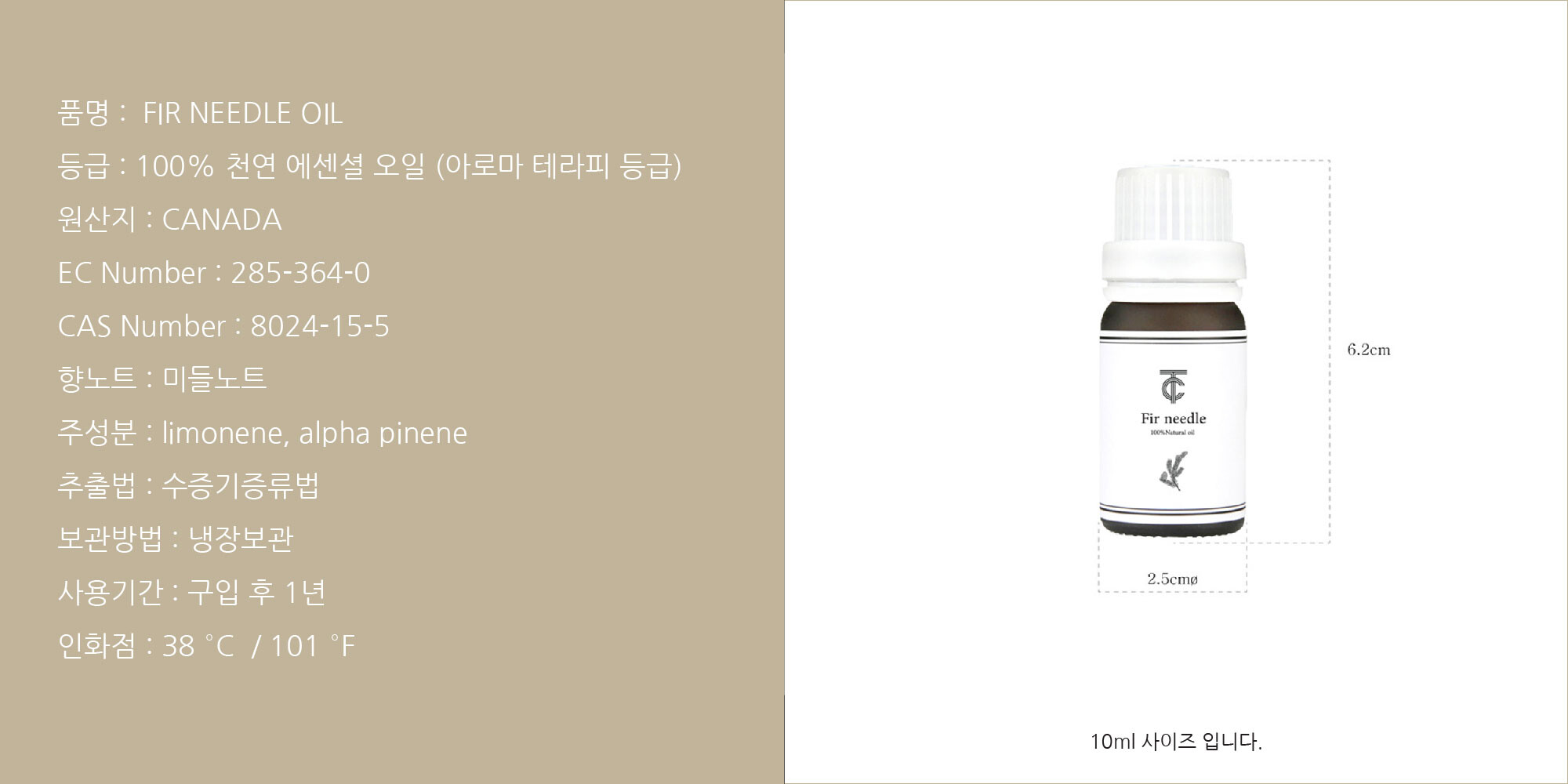100% 순수 천연 에센셜 오일 퍼니들 (전나무 잎)
