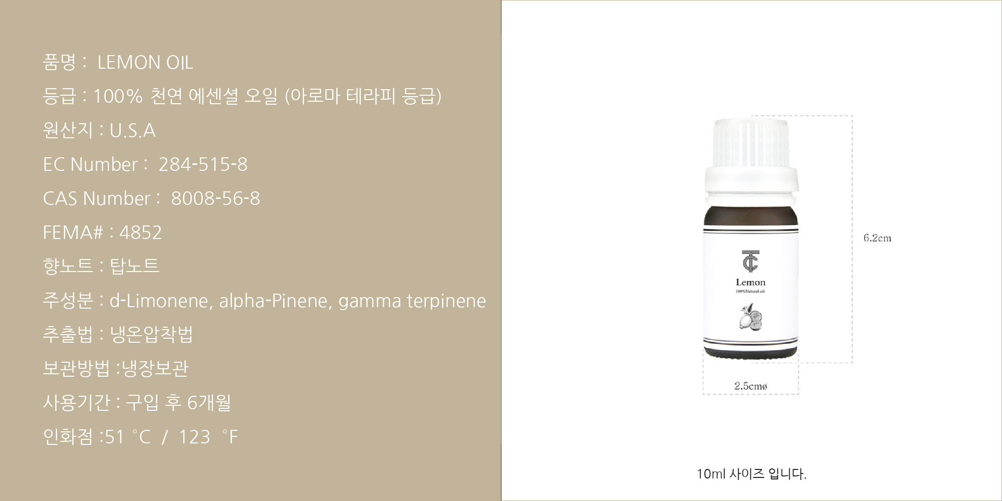 100% 순수 천연에센셜 오일 레몬