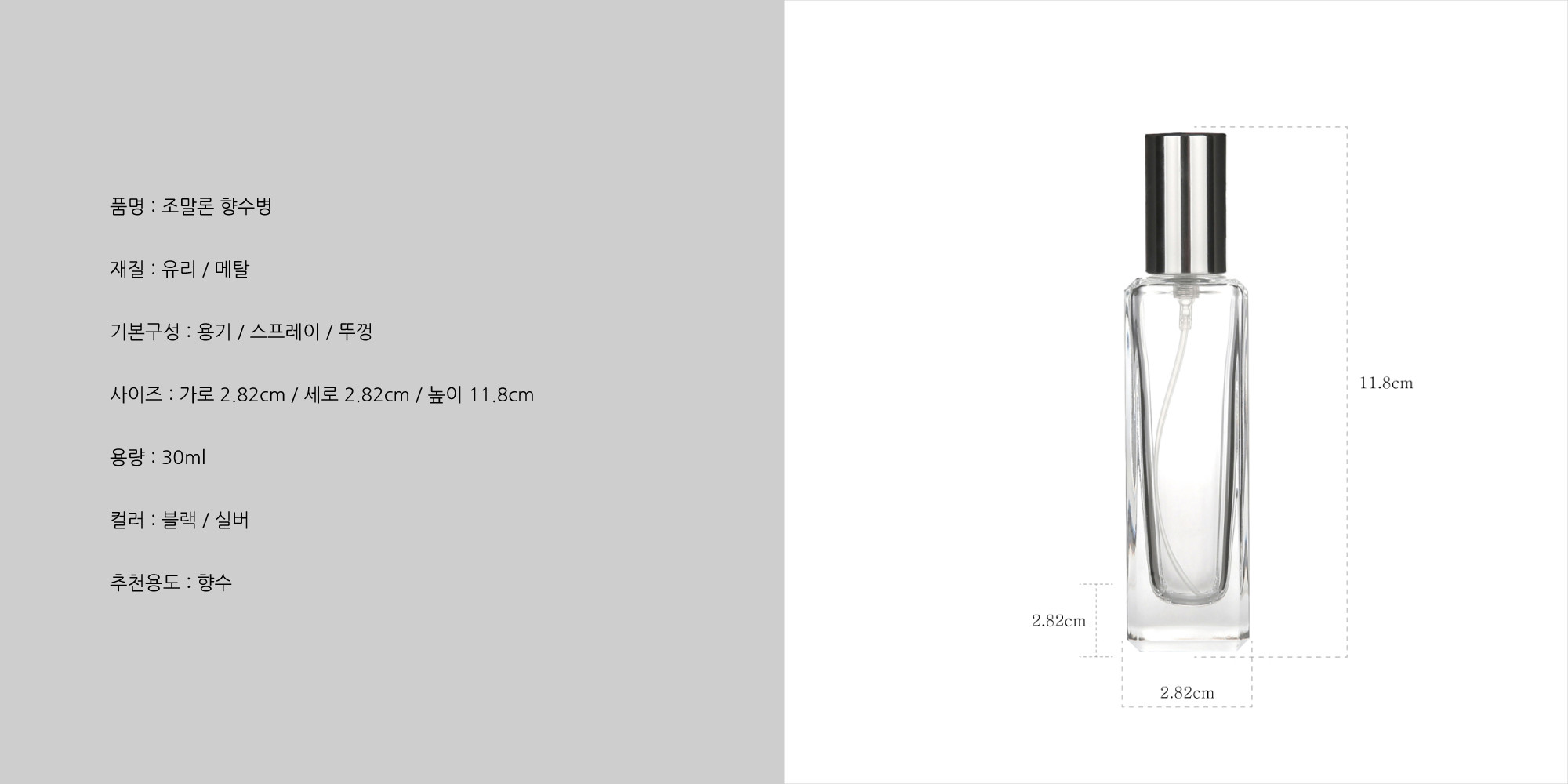 - 조말론 30ml 향수병과 같은 디자인으로 제작된 고퀄리티 향수 용기 입니다.