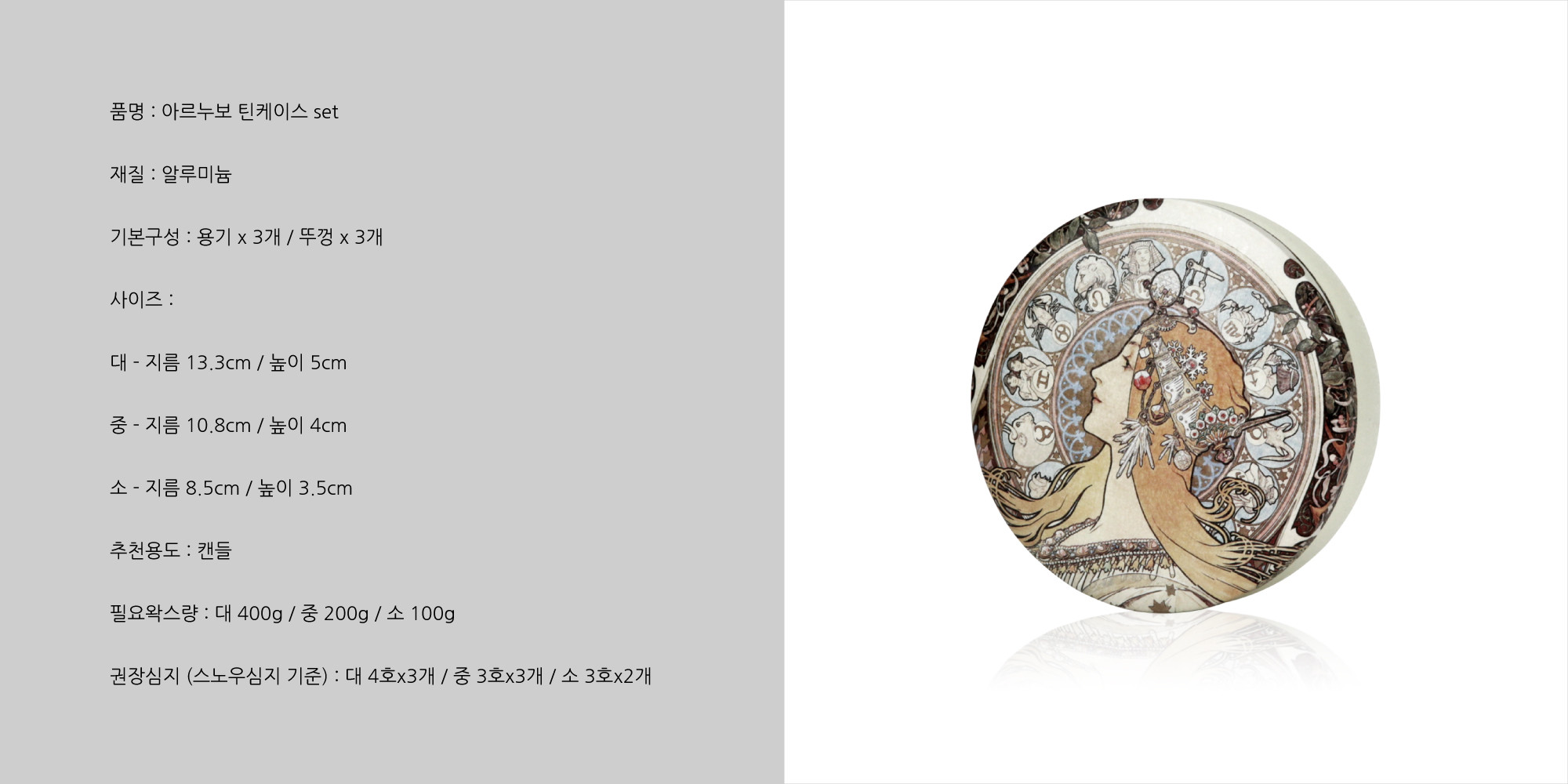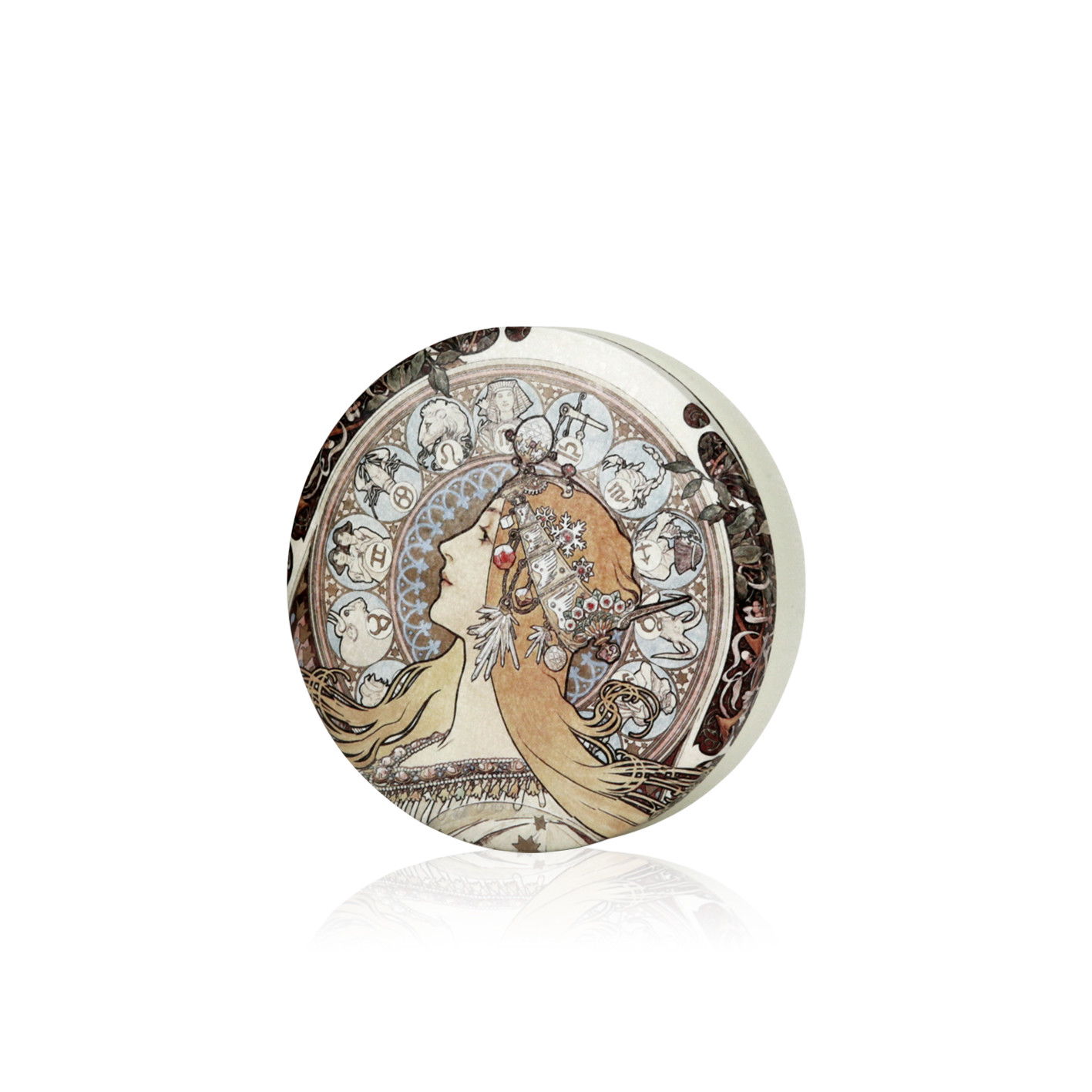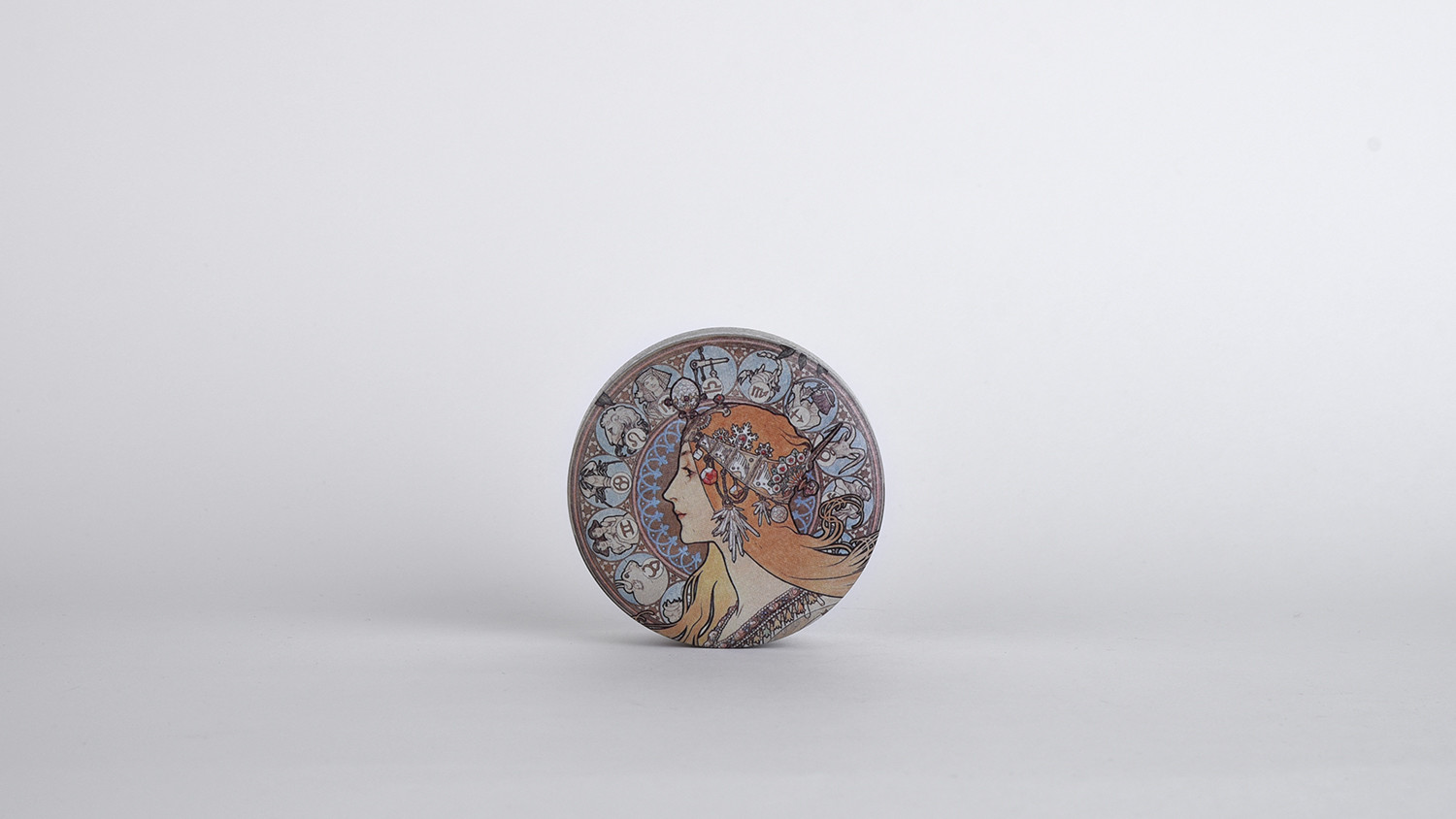 아르누보 대표 작가 알폰스 무하의 가장 인기 있는 디자인 황도 12궁이 그려진 틴케이스입니다.