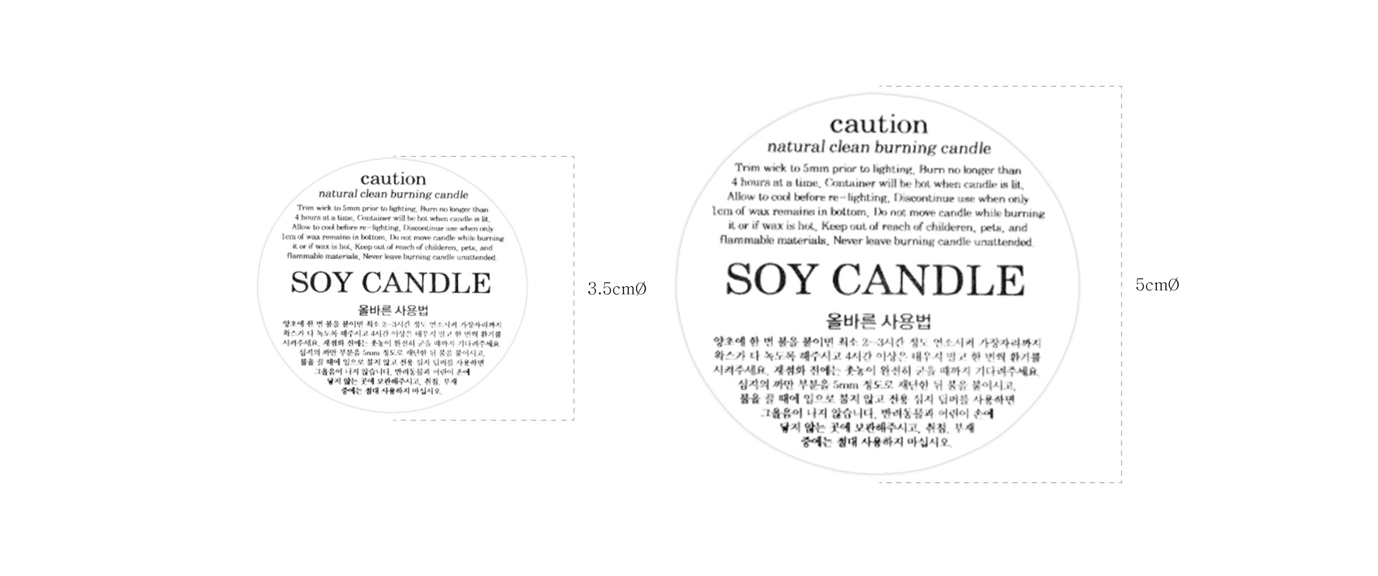 틴케이스, 7oz, 9oz 캔들용기 사이즈 바닥면에 부착하도록 제작된 사용법 스티커입니다.