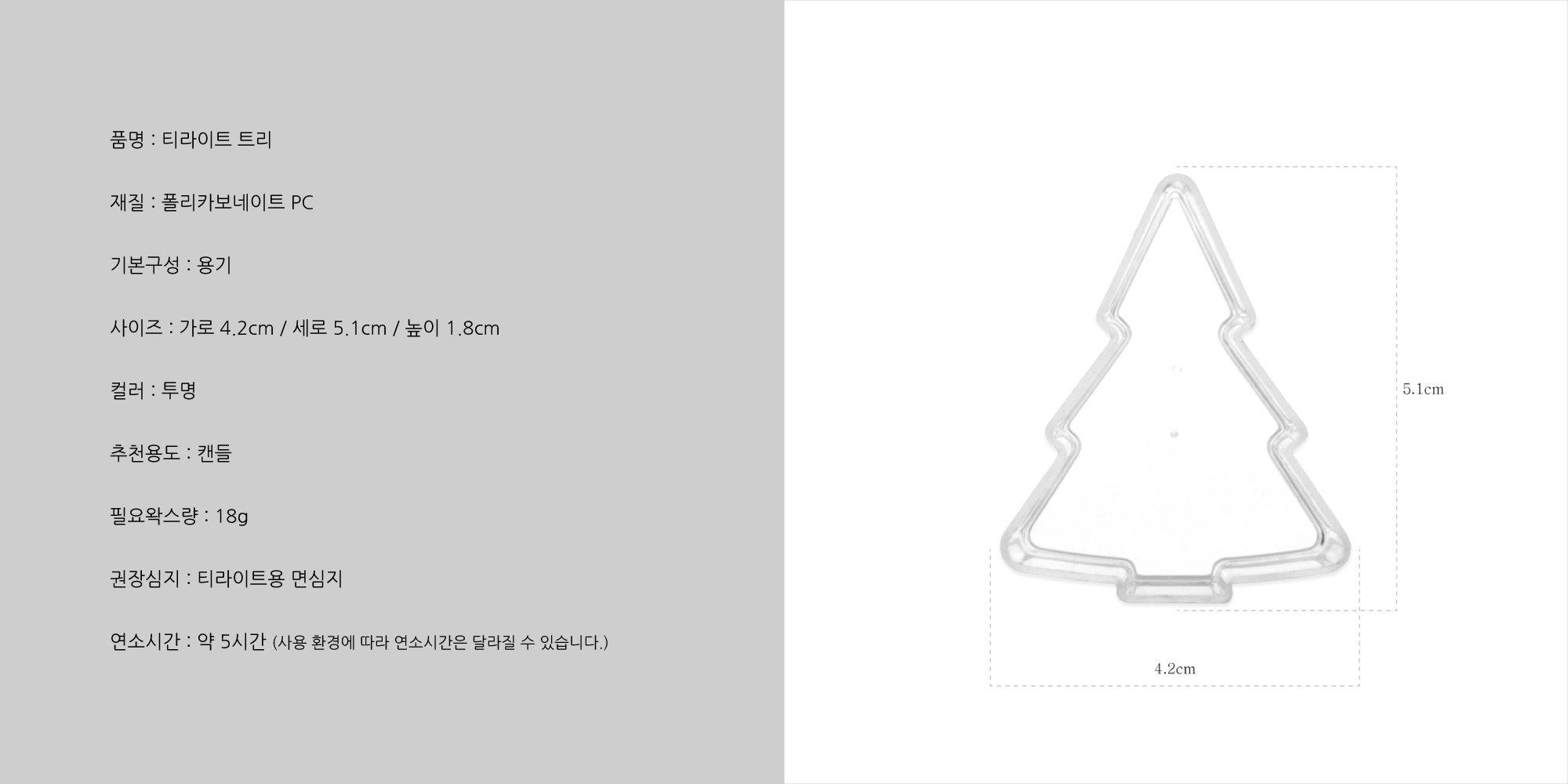 • 고온에 강한 PC 재질의 티라이트용 컨테이너이나 불꽃이 직접 용기에 닿을 경우 용기가 녹을 수 있으므로 전용 심지를 사용해 주세요.