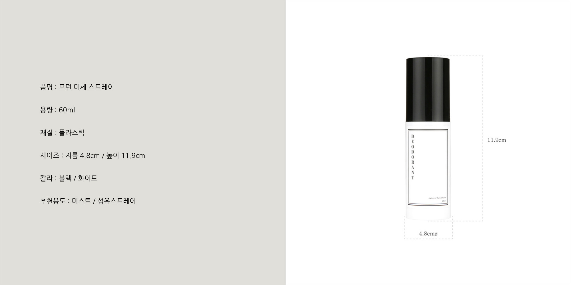 • 심플하고 깔끔한 디자인의 모던 미세 스프레이 용기입니다.