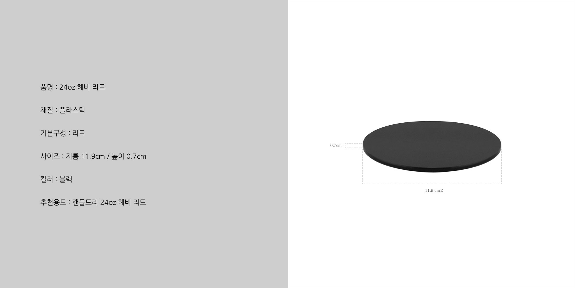 - 캔들 용기는 포함되지 않은, '리드(뚜껑)'만 판매되는 상품입니다.