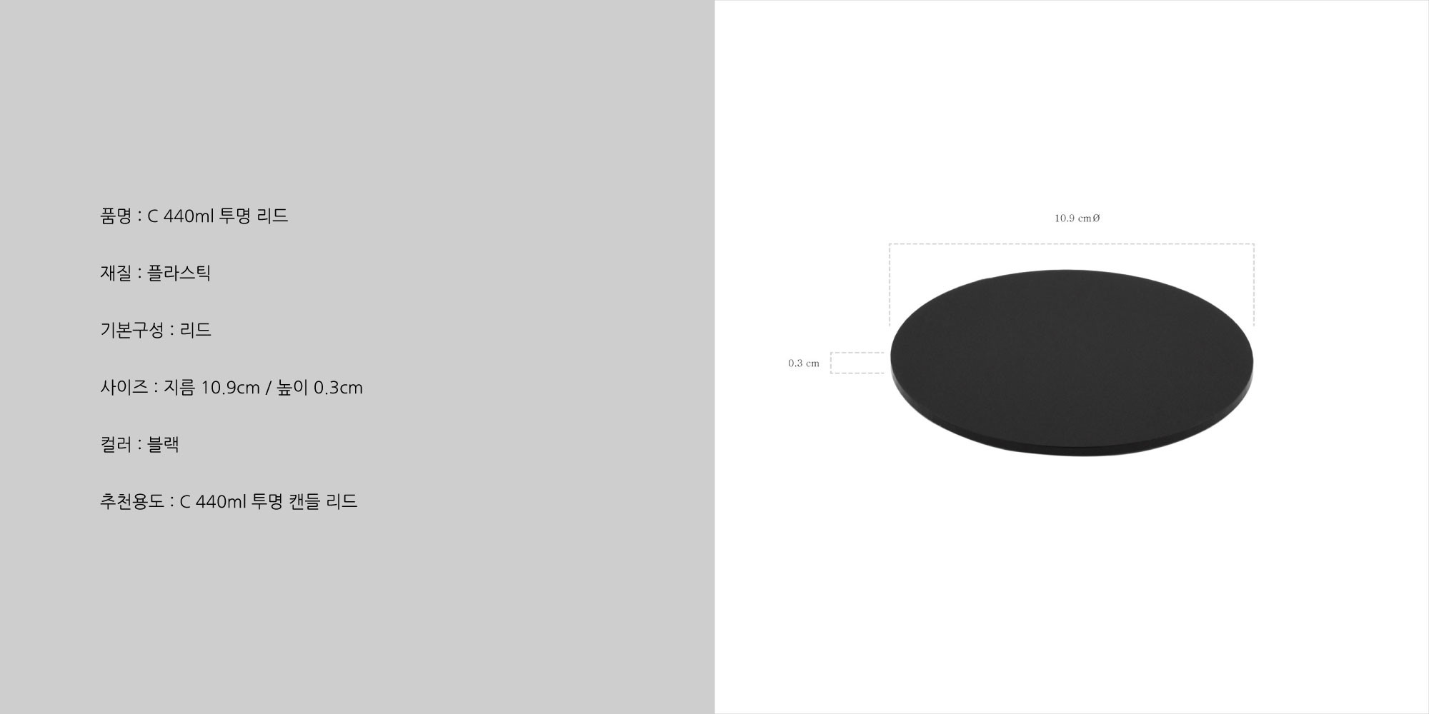 - C 440ml 투명 캔들 용기에 사용할 수 있는 아크릴 리드입니다.