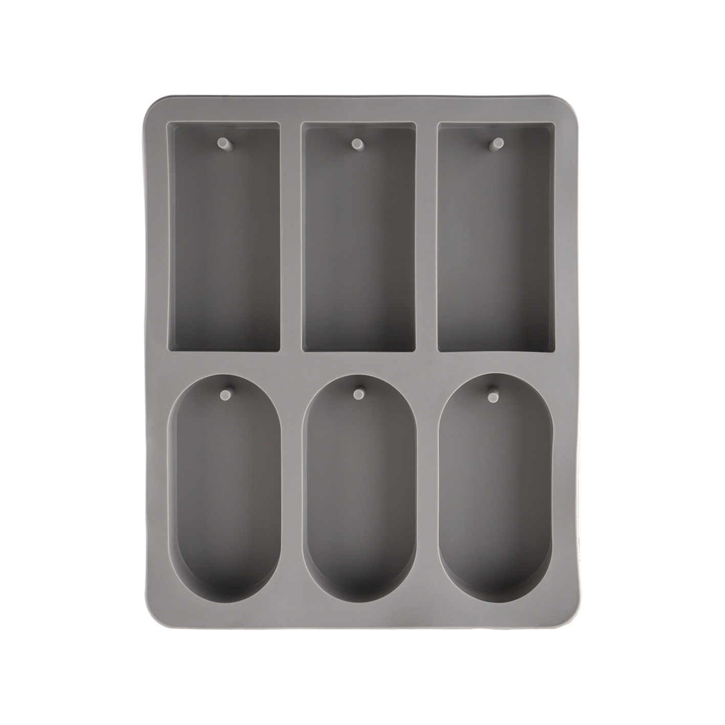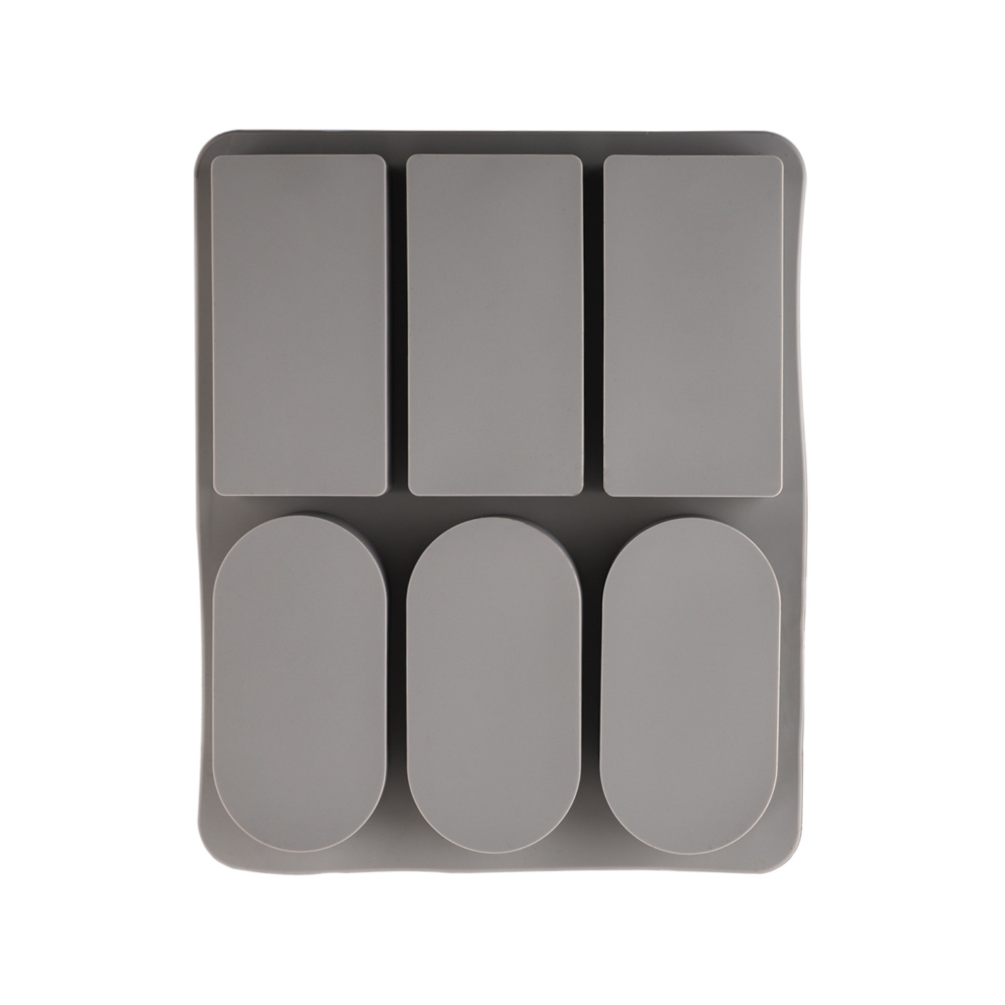 가로 5cm x 세로 10cm 크기의 직사각형 및 라운드 고체 방향제 6개를 한번에 제작할 수 있는 몰드입니다.
