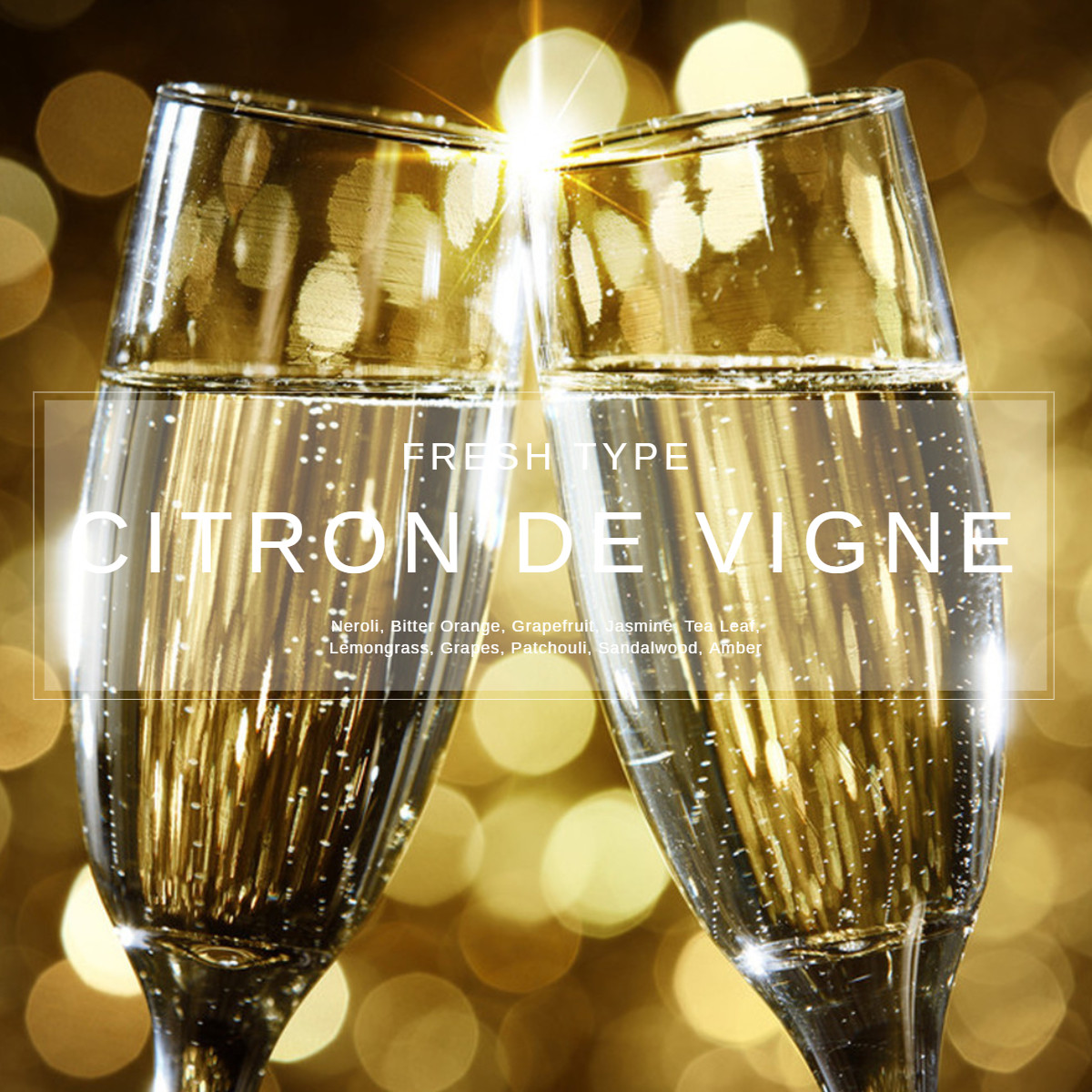시트러스의 강렬함. 톡 쏘는 듯한 스파클링 와인. 부드럽게 슬며시 앉은 화이트 머스크.